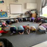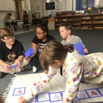 This month Kindergarten through Middle School students practiced and participated in the team sport of Basketball. At the Kindergarten and Lower Elementary levels, the objectives are designed to develop hand-eye coordination and spatial awareness. We practiced dribbling a ball with either hand while changing pathways, direction, and speed. We worked on passing a ball to a stationary and moving target using both a bounce and chest pass.