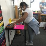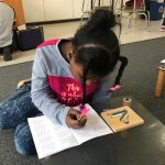 In addition, students had to catch a passed ball while they were stationary and in motion. We demonstrated the proper technique of pivoting while holding a ball and identified markings on the court. Students were also given a choice to use a blue basketball which is lighter and easier to shoot into the net. A shorter net was also used for those students not able to reach the taller nets. The goal is to modify each sport to have students be successful.