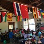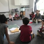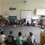 - Students receiving a History lesson in the outdoor classroom.
