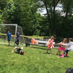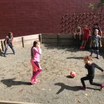 - Students playing football at recess.