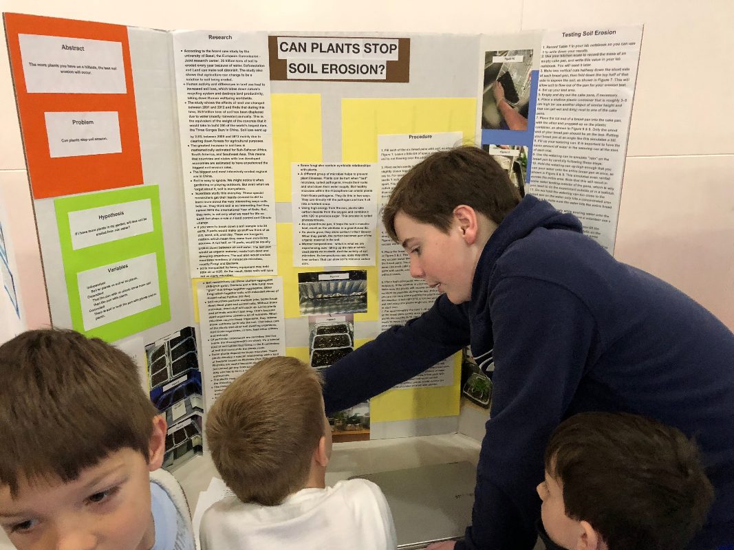 Congratulations to the 6th and 7th years on a fantastic Science Fair! While 8th years continue to work on their expert projects, the 6th and 7th years researched and presented topics surrounding the theme of environmental conservation. Topics ranged from efficient lighting in homes, recycling practices, and using green roofs for drainage in urban areas.