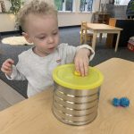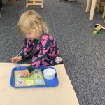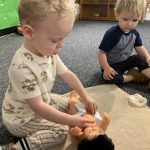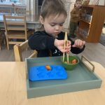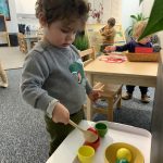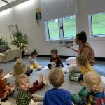 Ms. Paromita, along with a couple of toddler parents, including Arhan’s mom, Supreeti, were dressed in traditional Indian attire and provided our children with a wonderful opportunity to experience the beauty of Indian culture. Our children were mesmerized by the sights and sounds! Ms. Paromita danced to Indian music in her gorgeous attire while the hallway was decorated with beautiful and meaningful items related to Diwali.