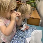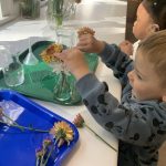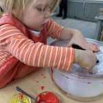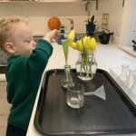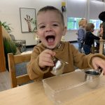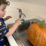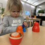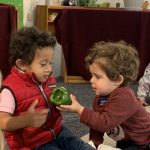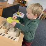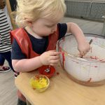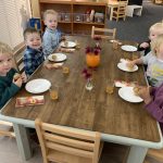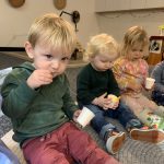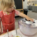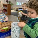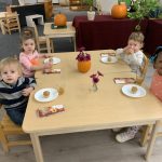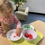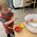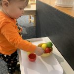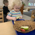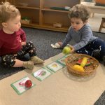 The children tasted pomegranate at the end of last week, which most found to be a delicious treat. This week, we tasted both raw cranberries (a huge hit!) and homemade cranberry sauce (thanks to Jaxxon’s family!) The children were fascinated when we cut both of these fruits open.