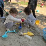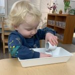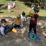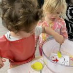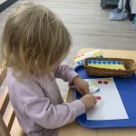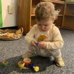 Our class gathered with the other toddler classes this week for a Diwali celebration. Diwali is a five-day festival that is observed around the world, and its rituals vary by region. Diwali represents new beginnings and the victory of light over darkness, good over evil. It is the triumph of righteousness, knowledge in place of ignorance. Homes are brightly illuminated with diyas (candles) and oil lamps, and people decorate their homes with rangoli. People also often wear new fine clothes and jewelry and celebrate with family and friends.