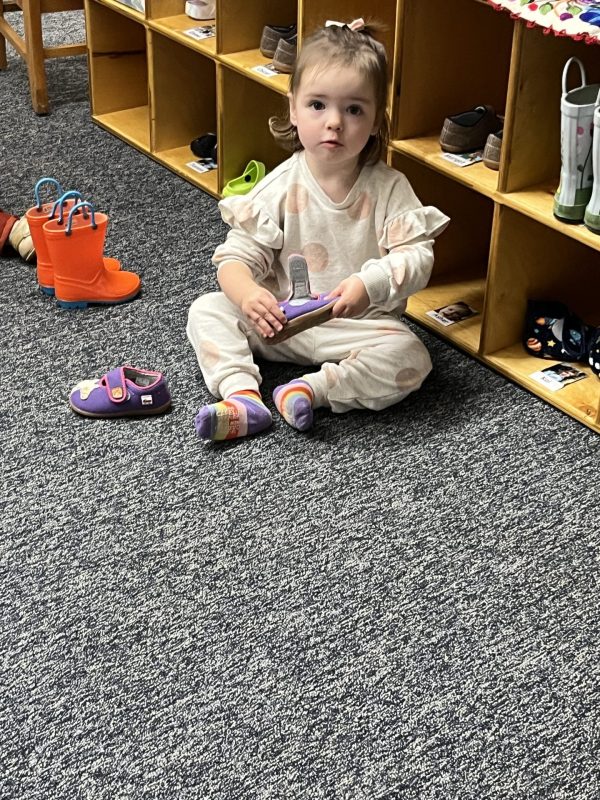 Ms. Paromita, along with a couple of toddler parents, including Arhan’s mom, Supreeti, were dressed in traditional Indian attire and provided our children with a wonderful opportunity to experience the beauty of Indian culture. Our children were mesmerized by the sights and sounds! Ms. Paromita danced to Indian music in her gorgeous attire while the hallway was decorated with beautiful and meaningful items related to Diwali.