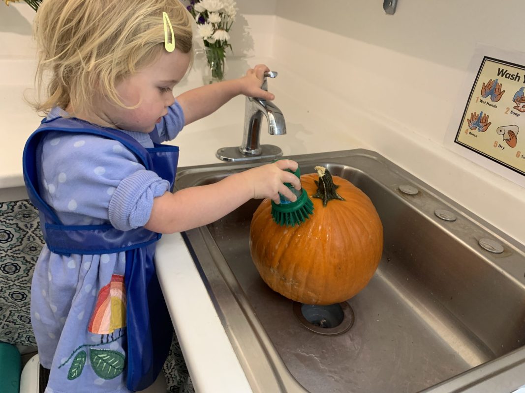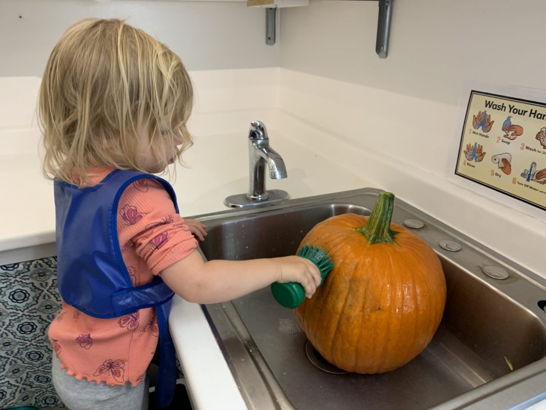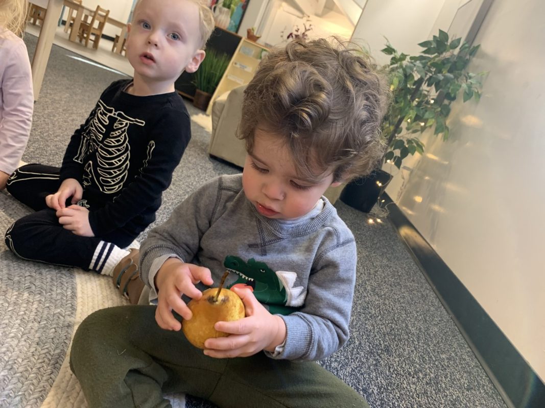 The children tasted pomegranate at the end of last week, which most found to be a delicious treat. This week, we tasted both raw cranberries (a huge hit!) and homemade cranberry sauce (thanks to Jaxxon’s family!) The children were fascinated when we cut both of these fruits open.