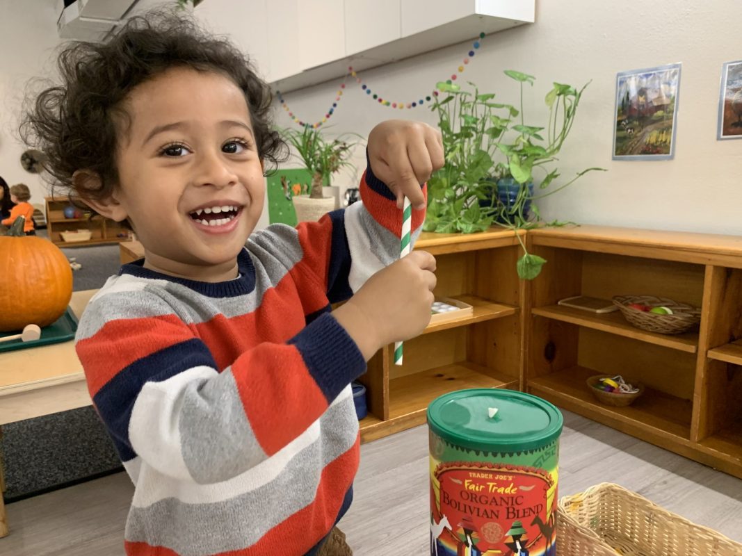 Our class gathered with the other toddler classes this week for a Diwali celebration. Diwali is a five-day festival that is observed around the world, and its rituals vary by region. Diwali represents new beginnings and the victory of light over darkness, good over evil. It is the triumph of righteousness, knowledge in place of ignorance. Homes are brightly illuminated with diyas (candles) and oil lamps, and people decorate their homes with rangoli. People also often wear new fine clothes and jewelry and celebrate with family and friends.