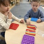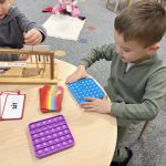 Practice skip counting during everyday activities—count by 10’s while putting away toys or going up stairs. Look for groups of 10 items around the house (silverware, toys, books) to reinforce this concept. Encourage your child to help siblings or friends with tasks, reinforcing the “ask three friends” approach we use in the classroom.