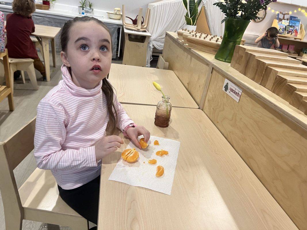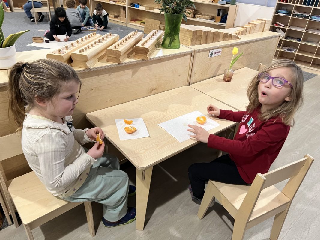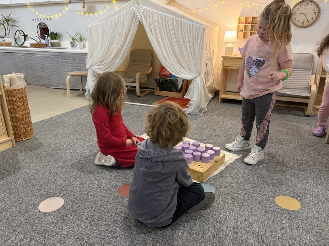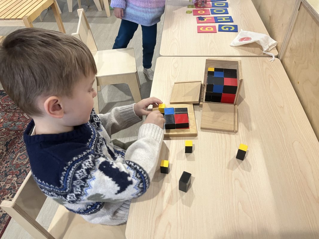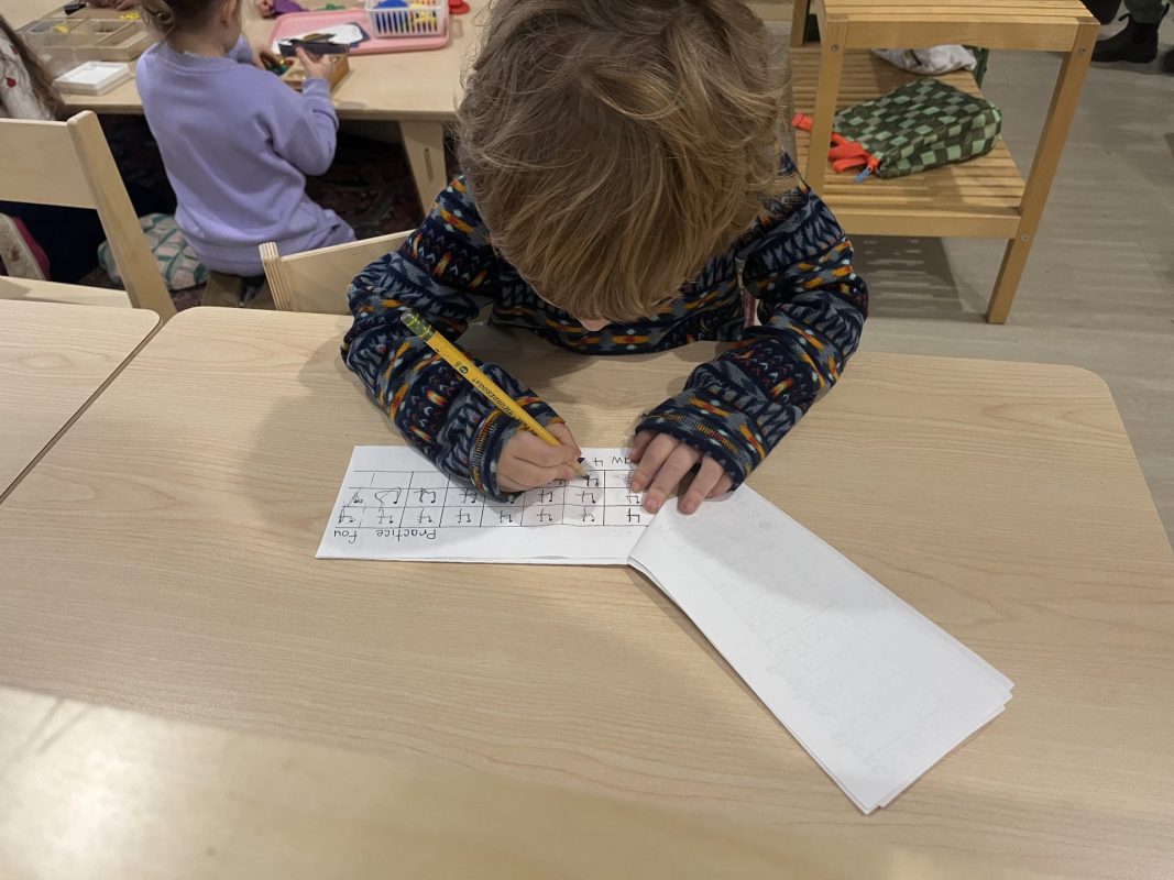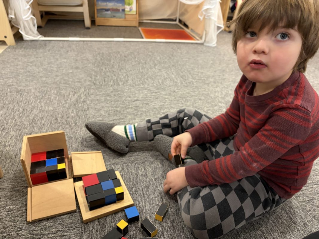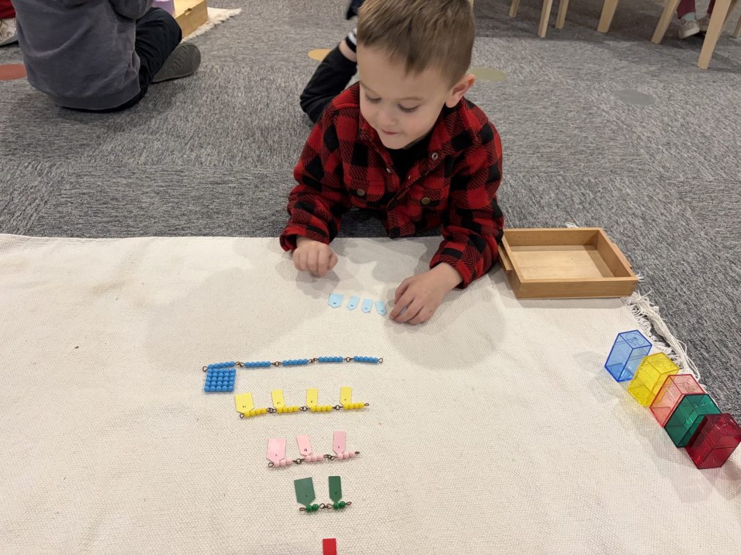 Last week, frigid temperatures kept us indoors, but we made the most of our indoor spaces! The children got excellent exercise in the gym and our Primary Open Space, using wobble boards, stationary bikes, climbing cubes, and more. This indoor time also provided wonderful opportunities for the children to strengthen their classroom community. One of the most beautiful developments we observed was how naturally the children are supporting one another. We always suggest to the children to “ask three friends before you ask a teacher” for help with work. This has been working beautifully, as we are seeing our little classroom community working together and collaborating. Watching older children guide younger friends through work and seeing peers problem-solve together demonstrates the power of our mixed-age environment. The children have easily adjusted to having me back from maternity leave, and I have really been enjoying getting to know all my “new” students! Their warmth and adaptability continue to impress me daily.