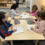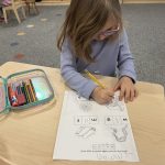 Practice skip counting during everyday activities—count by 10’s while putting away toys or going up stairs. Look for groups of 10 items around the house (silverware, toys, books) to reinforce this concept. Encourage your child to help siblings or friends with tasks, reinforcing the “ask three friends” approach we use in the classroom.