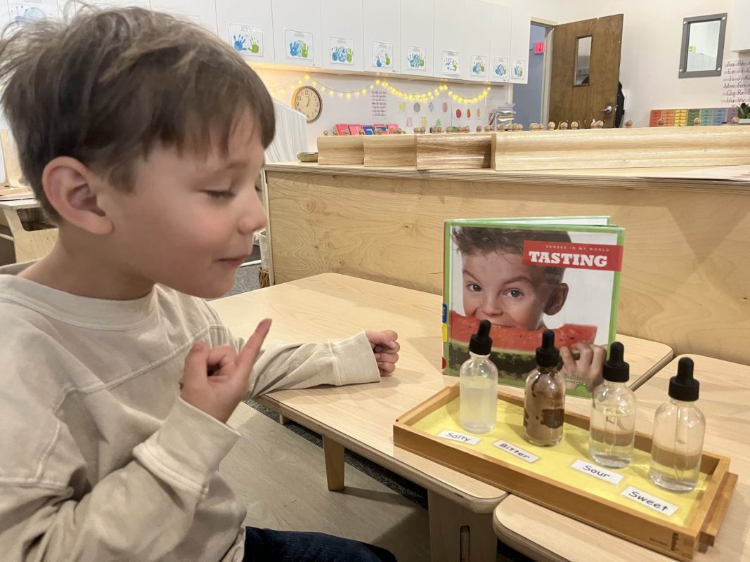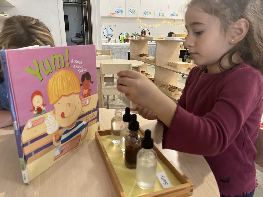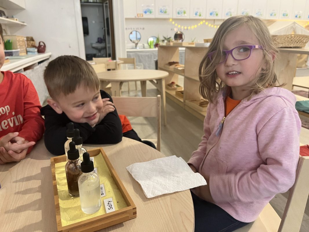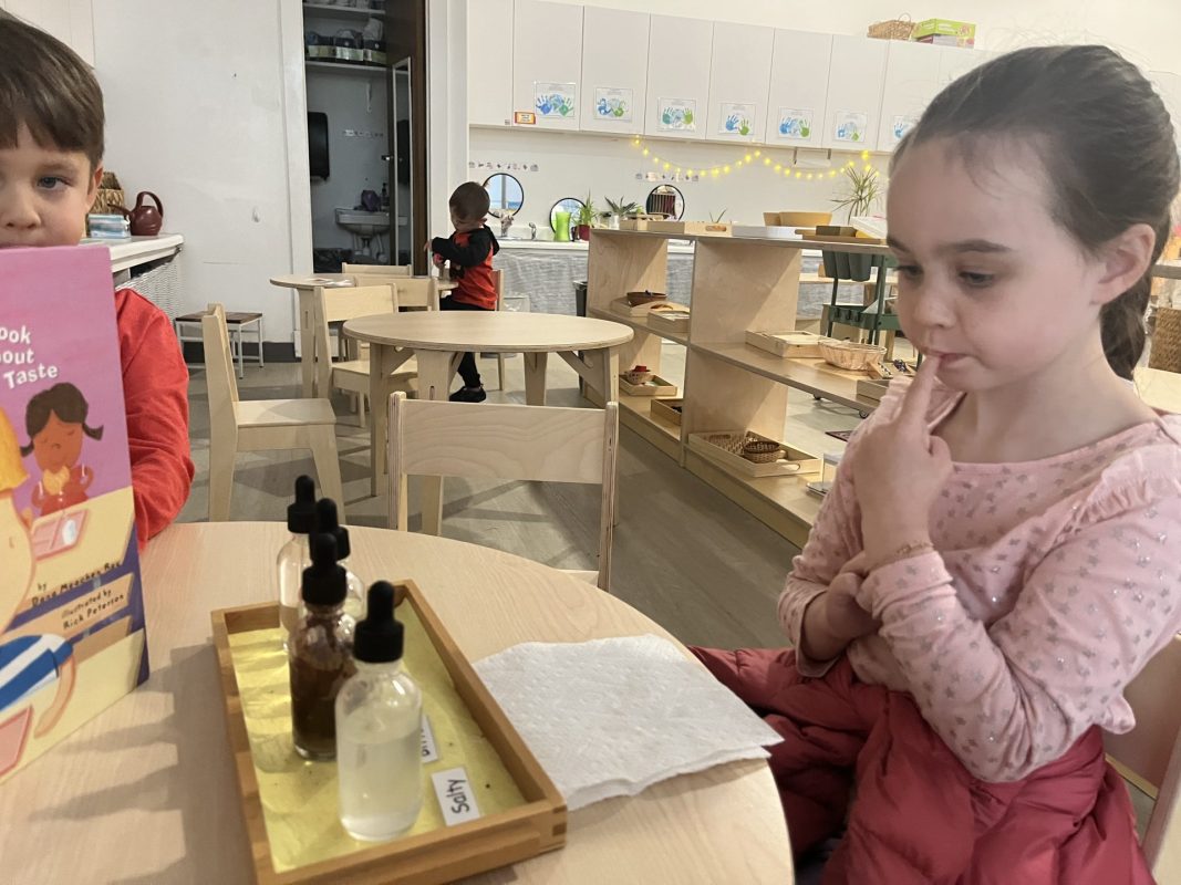The children continued their exploration of the five senses through hands-on experiences. These sensorial activities help develop the children’s ability to observe, classify, and articulate their experiences—foundational skills for all future learning.