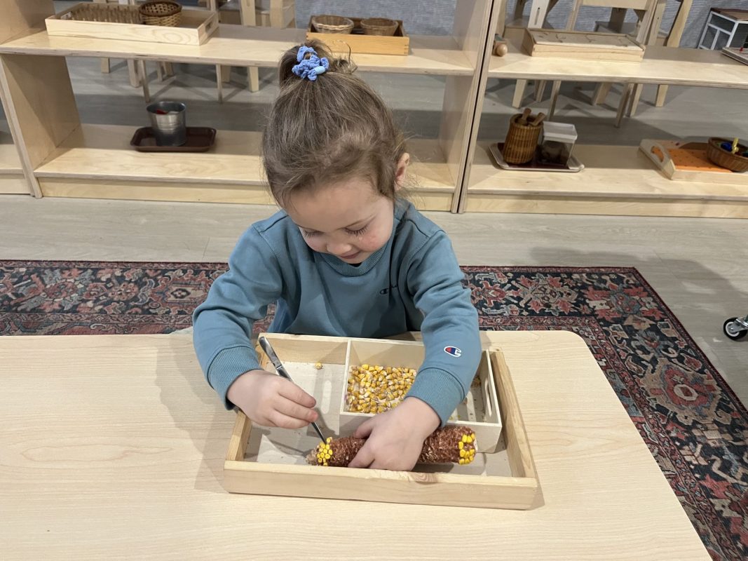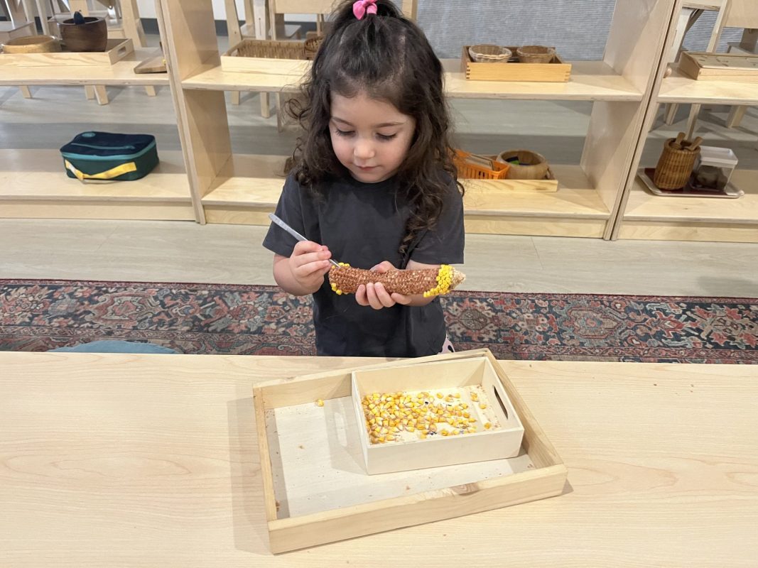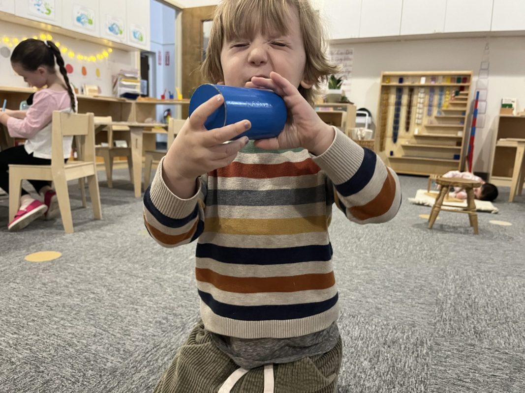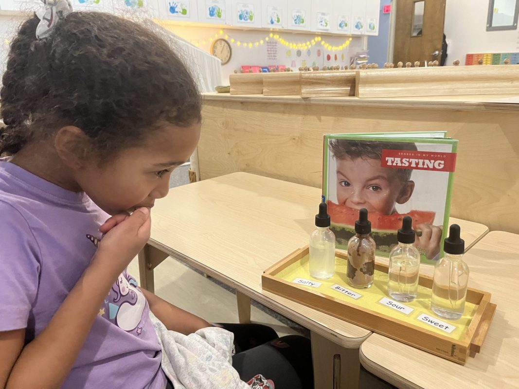 The children continued their exploration of the five senses through hands-on experiences. These sensorial activities help develop the children’s ability to observe, classify, and articulate their experiences—foundational skills for all future learning.
