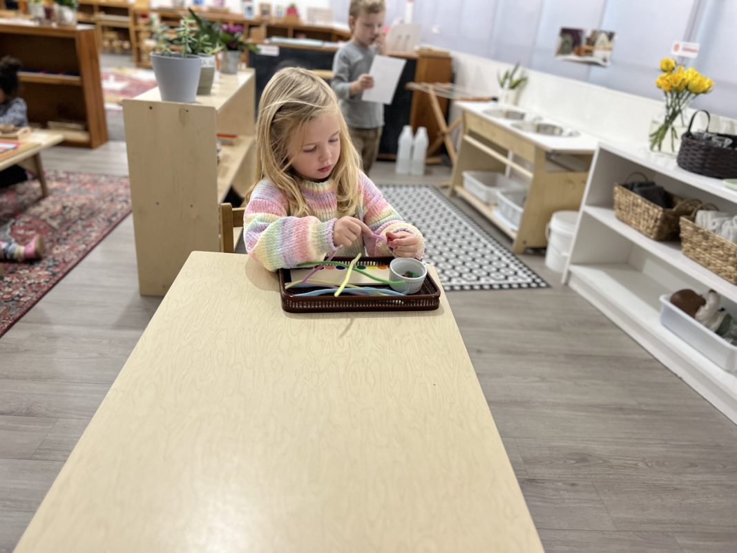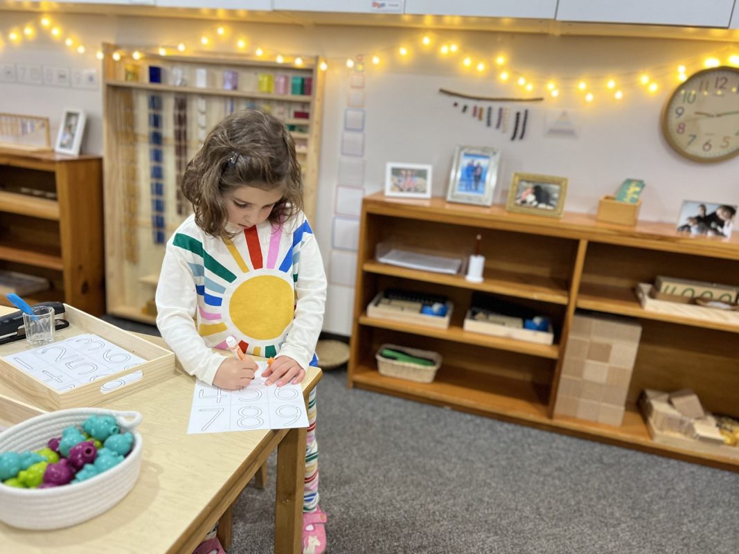 Research shows children ages three to six learn best through their hands. To truly understand a concept, they need to explore it through touch. This is why so many lessons in the Montessori environment are not based on memorization alone. Most concepts we teach involve tracing, manipulating, and exploring with their hands. Perhaps most importantly, focusing on the process protects the child’s intrinsic motivation to learn and understand. External factors such as recognition, praise, or reward do not influence it. We truly value and encourage the time and experience with the materials.