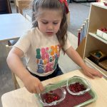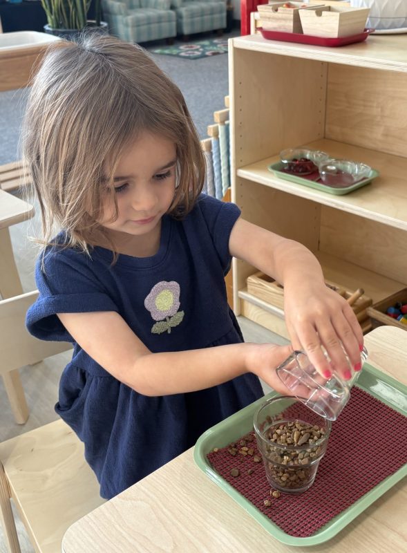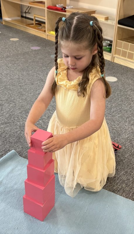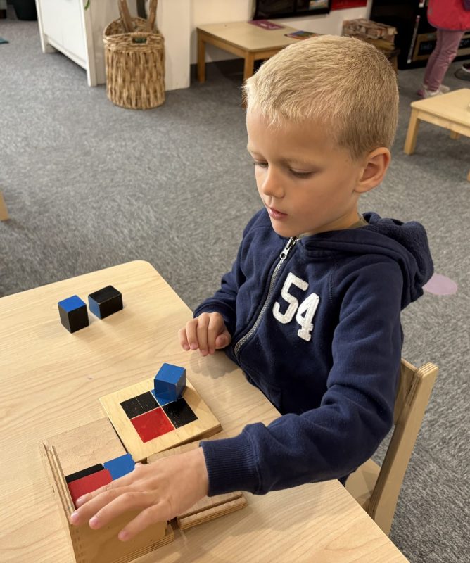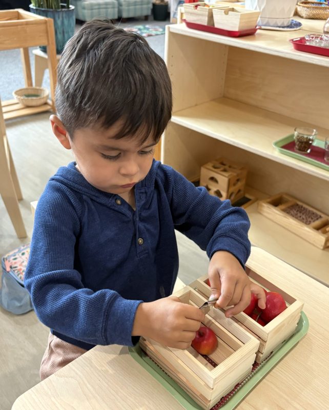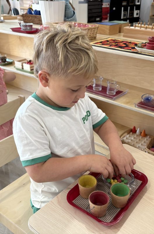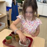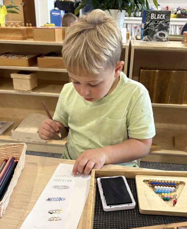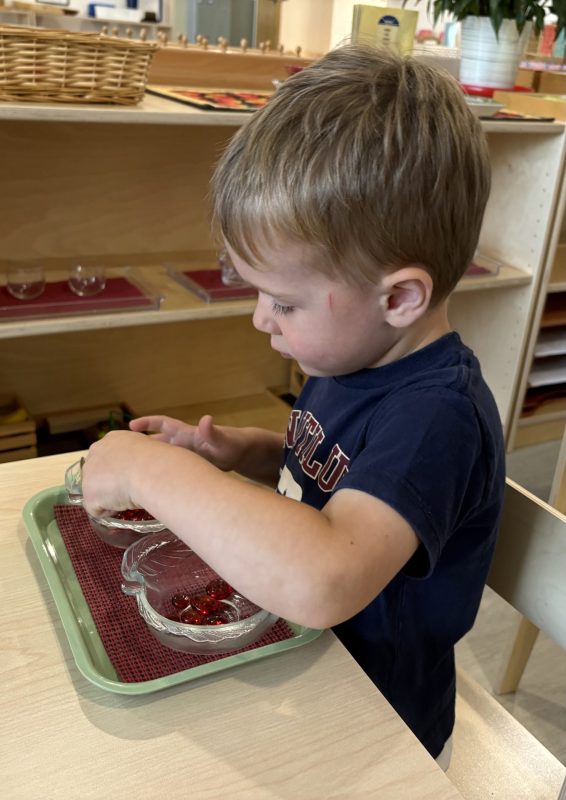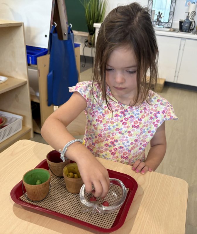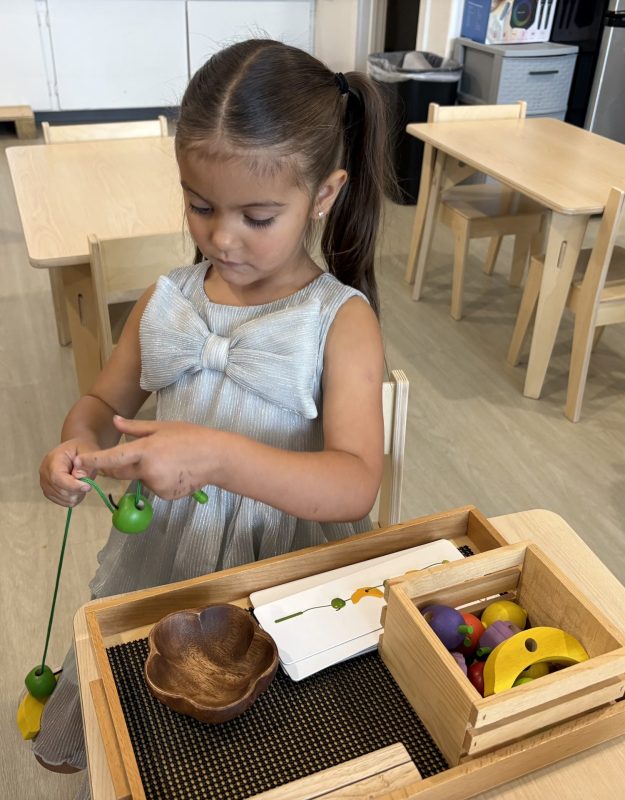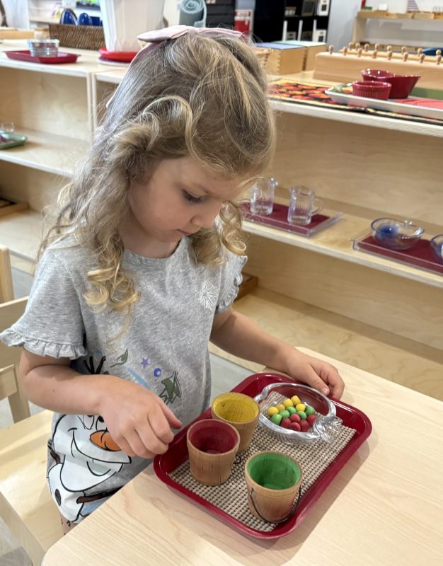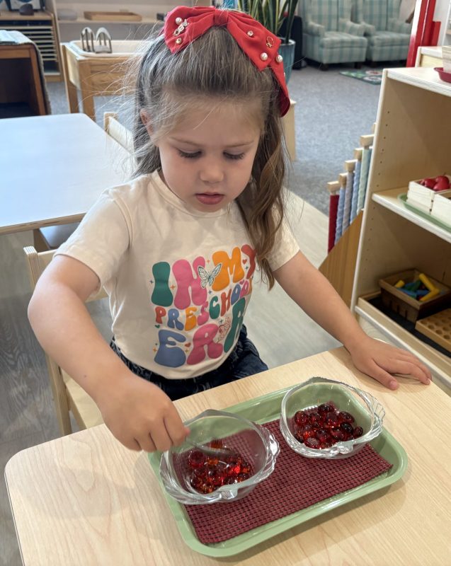 Research shows children ages three to six learn best through their hands. To truly understand a concept, they need to explore it through touch. This is why so many lessons in the Montessori environment are not based on memorization alone. Most concepts we teach involve tracing, manipulating, and exploring with their hands. Perhaps most importantly, focusing on the process protects the child’s intrinsic motivation to learn and understand. External factors such as recognition, praise, or reward do not influence it. We truly value and encourage the time and experience with the materials.
