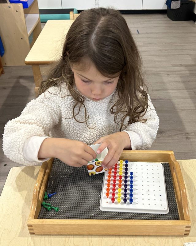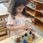 We also tasted seedless mandarins, which every child enjoyed. The children were then free to choose the mandarin peeling activity. In addition to mandarin peeling, we had a cucumber-cutting activity available to the children this week since they were all so keen on the cucumbers we tried a few weeks ago. In our Montessori toddler classroom, the excitement around food preparation activities is palpable. With eager anticipation, children embrace the opportunity to take charge of creating their own snacks. This newfound independence not only fills them with pride but also nurtures their self-confidence. Engaging in these multi-step activities they not only satisfy their hunger but also strengthen fine motor skills.