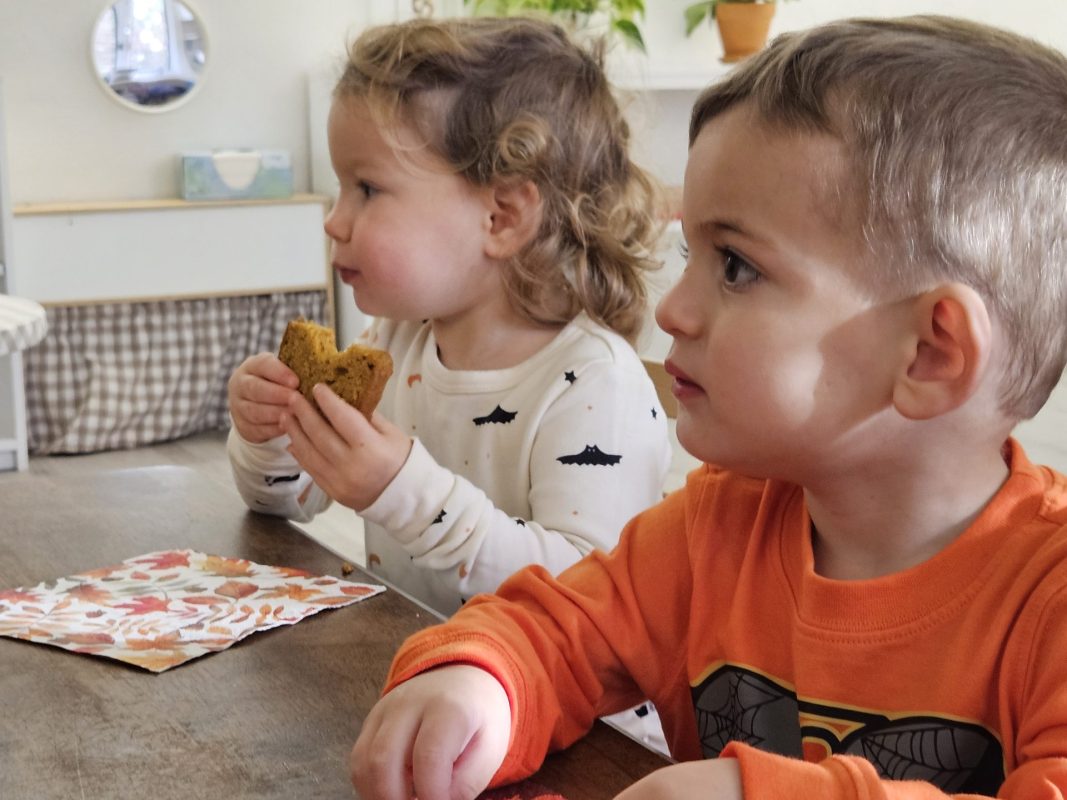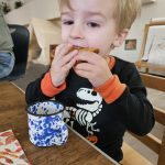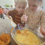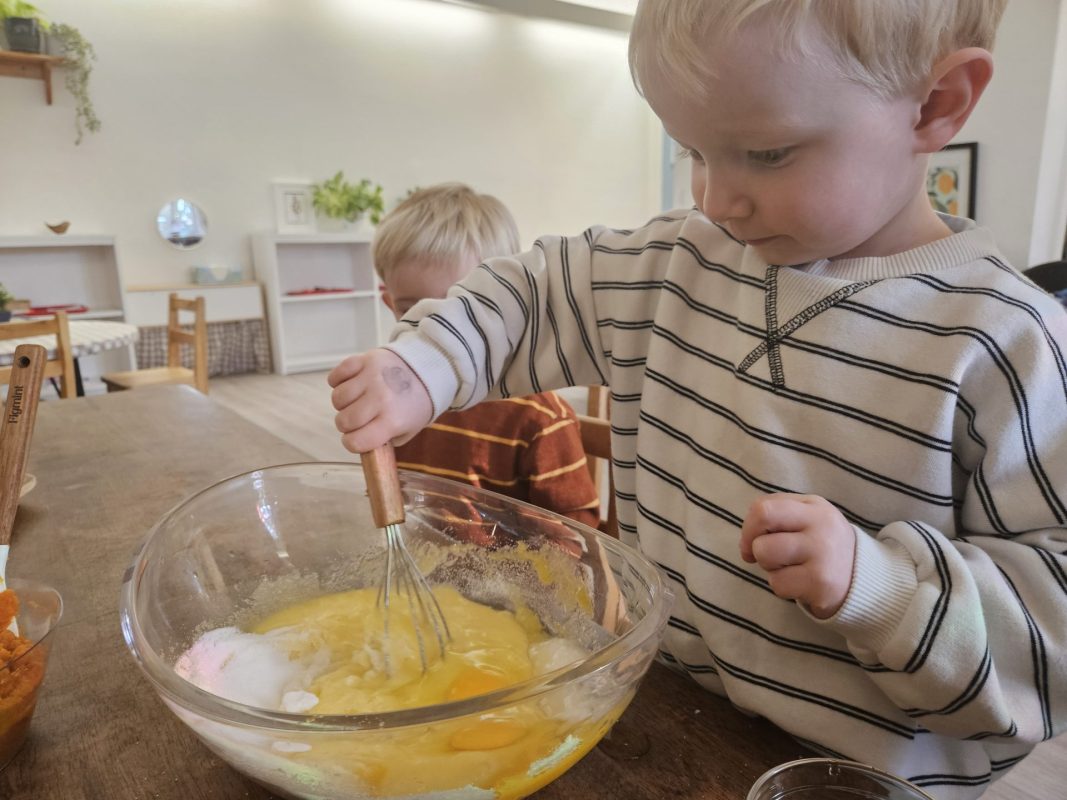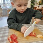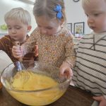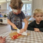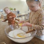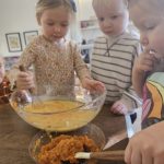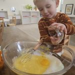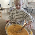 Many things this week needed to be flexible due to the weather, so we were able to enjoy the gym each day! One thing I have recognized with toddlers is the need to run, climb, and chase daily. With more flexibility, we were also able to start our weekly baking! The children were so happy to make blueberry scones; the children helped with each step of the process and were very happy to enjoy the eating part, too! Our daily classroom work allowed the children to practice their skills, enforce concentration, and simply be content.