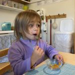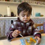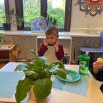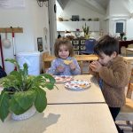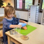 Opening a large pumpkin gave us a wonderful opportunity to explore, feel different textures, and see the inside of the pumpkin. We talked and read about the life cycle of pumpkins, how they grow, what we can do with them, and most importantly….how to cook with pumpkins! The children made pumpkin bread; each child took turns helping to incorporate ingredients, talking about each step, and enjoying working together with our hands. We took a long walk to Mr. Manuel’s kitchen to bake our bread…..the school smelled absolutely delightful! The children were amazing at practicing their patience, and we enjoyed our pumpkin bread the next day on Halloween!