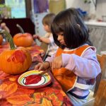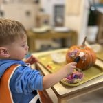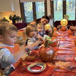 The children were smitten watching our older “friends” walk in the Halloween Parade! Each child waved with joy and watched in awe of our peers; the parade ended with an epic spooky dance by all the students! The toddlers definitely let loose, too! As the week wrapped up, we read all the Halloween books, baked the pumpkin bread, and explored the inside of pumpkins. as one of our young friends said, “Miss Mollie, Finally Halloween!” Yes, kiddo, it’s finally Halloween!!!