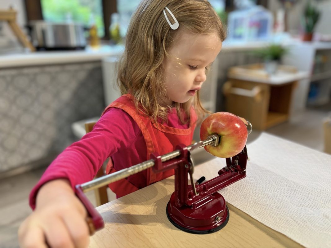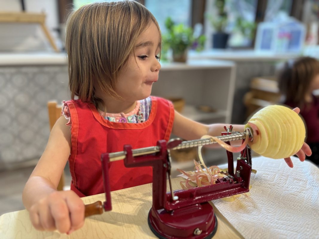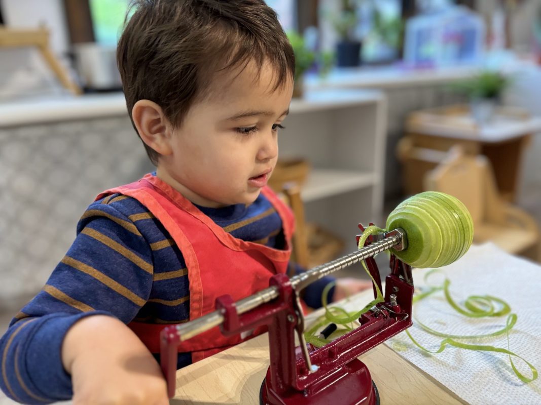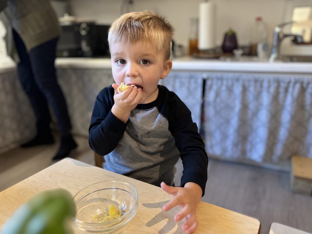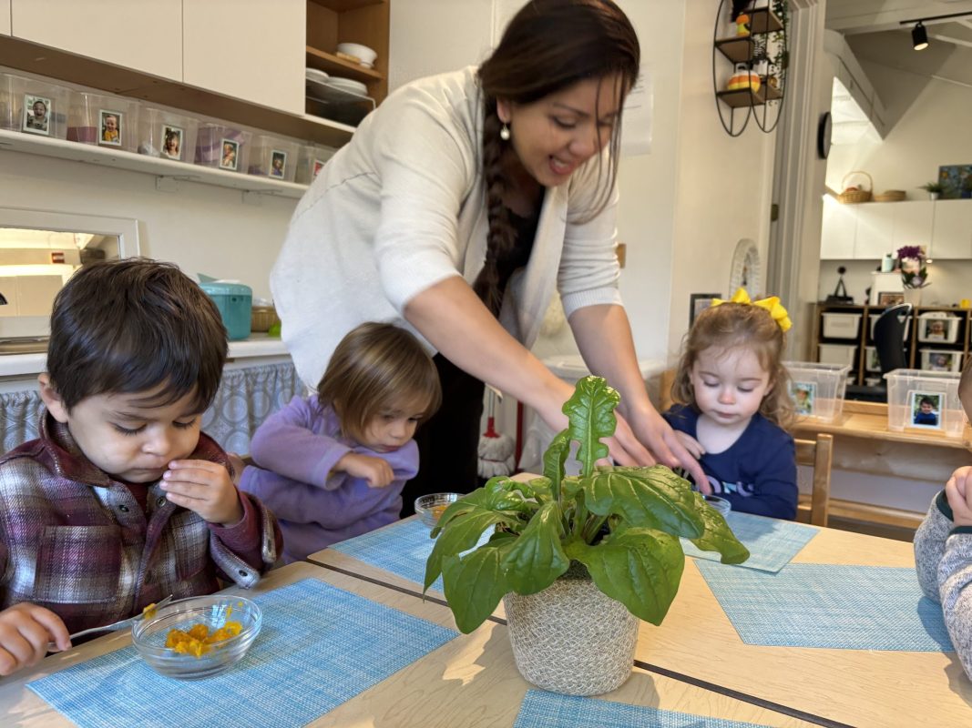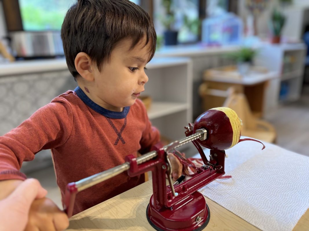 Opening a large pumpkin gave us a wonderful opportunity to explore, feel different textures, and see the inside of the pumpkin. We talked and read about the life cycle of pumpkins, how they grow, what we can do with them, and most importantly….how to cook with pumpkins! The children made pumpkin bread; each child took turns helping to incorporate ingredients, talking about each step, and enjoying working together with our hands. We took a long walk to Mr. Manuel’s kitchen to bake our bread…..the school smelled absolutely delightful! The children were amazing at practicing their patience, and we enjoyed our pumpkin bread the next day on Halloween!