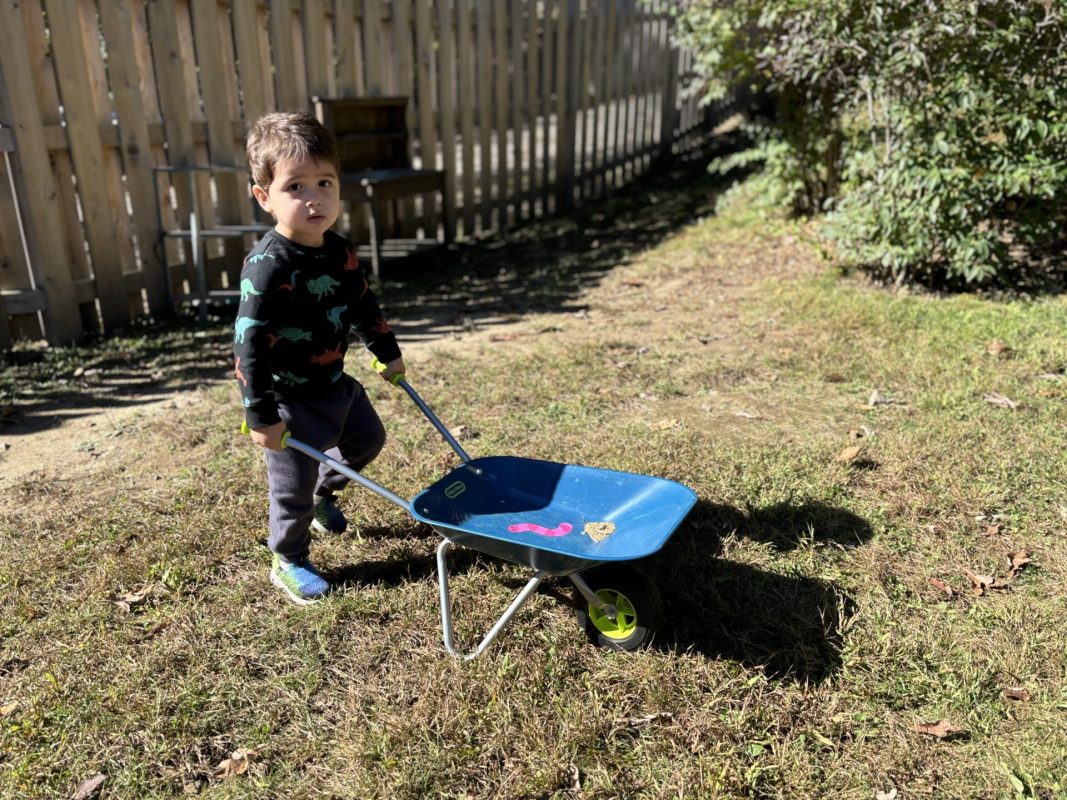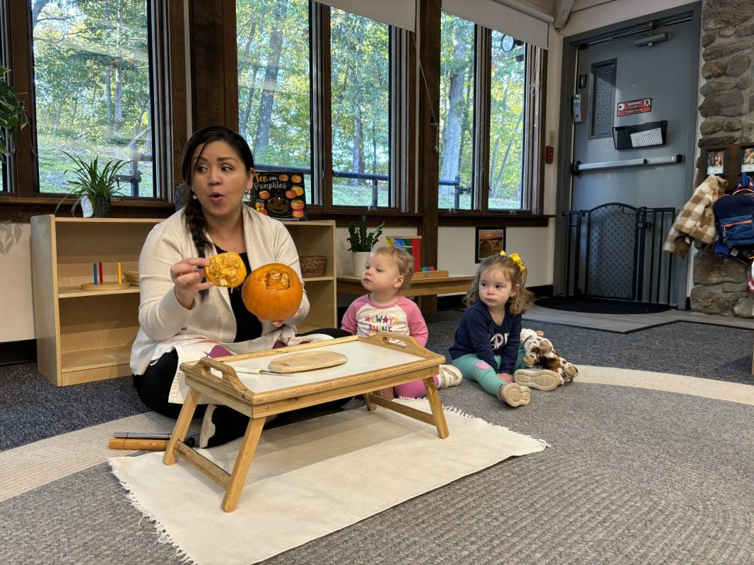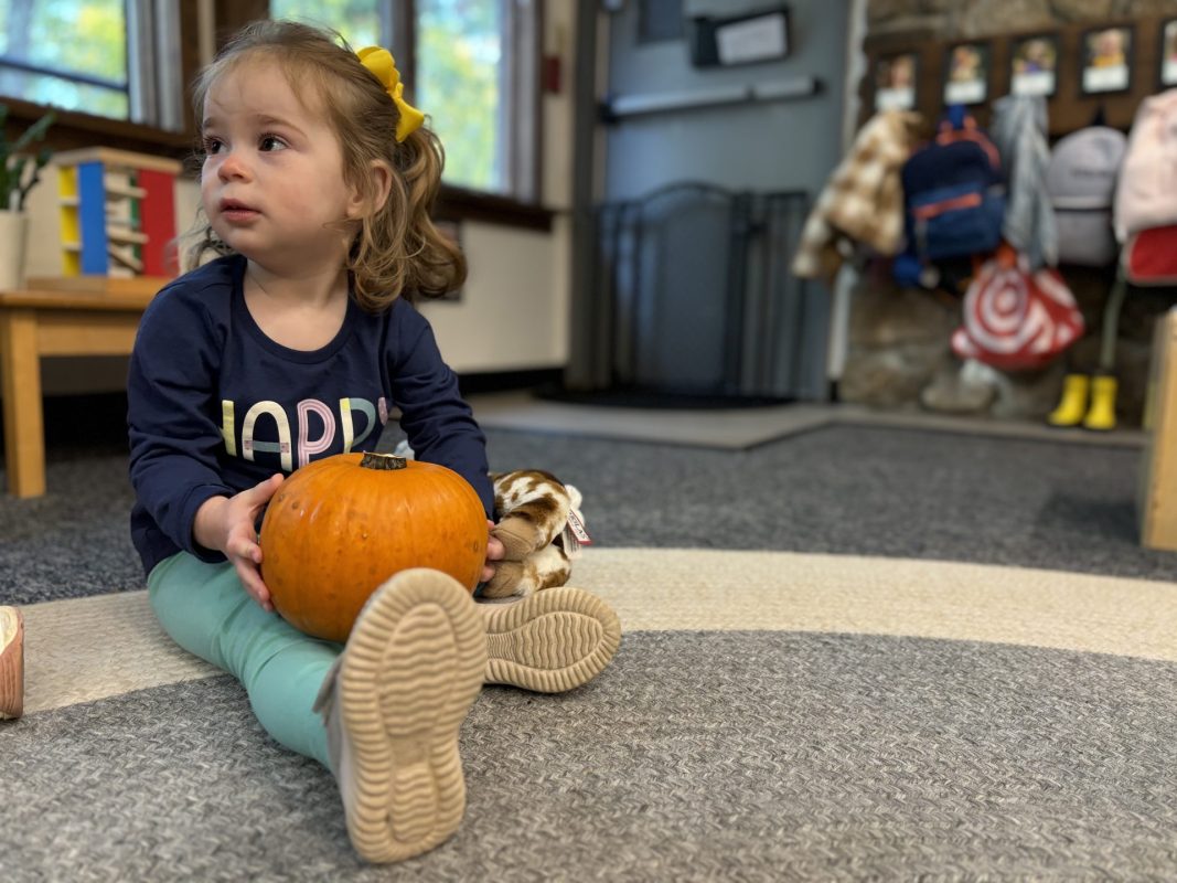 The past two weeks have been a whirlwind of fun! We have been talking about Halloween, pumpkins, bats, and of course, candy! We have been enjoying getting to know a new classmate who joined us; the children already know his name and eagerly await him each morning. The children are also very excited to see the birds at our feeder…oftentimes so excited with an excited squeal that scares the birds away! The children can now identify the chickadee, bluejay, and tufted titmouse when the birds visit our feeder.