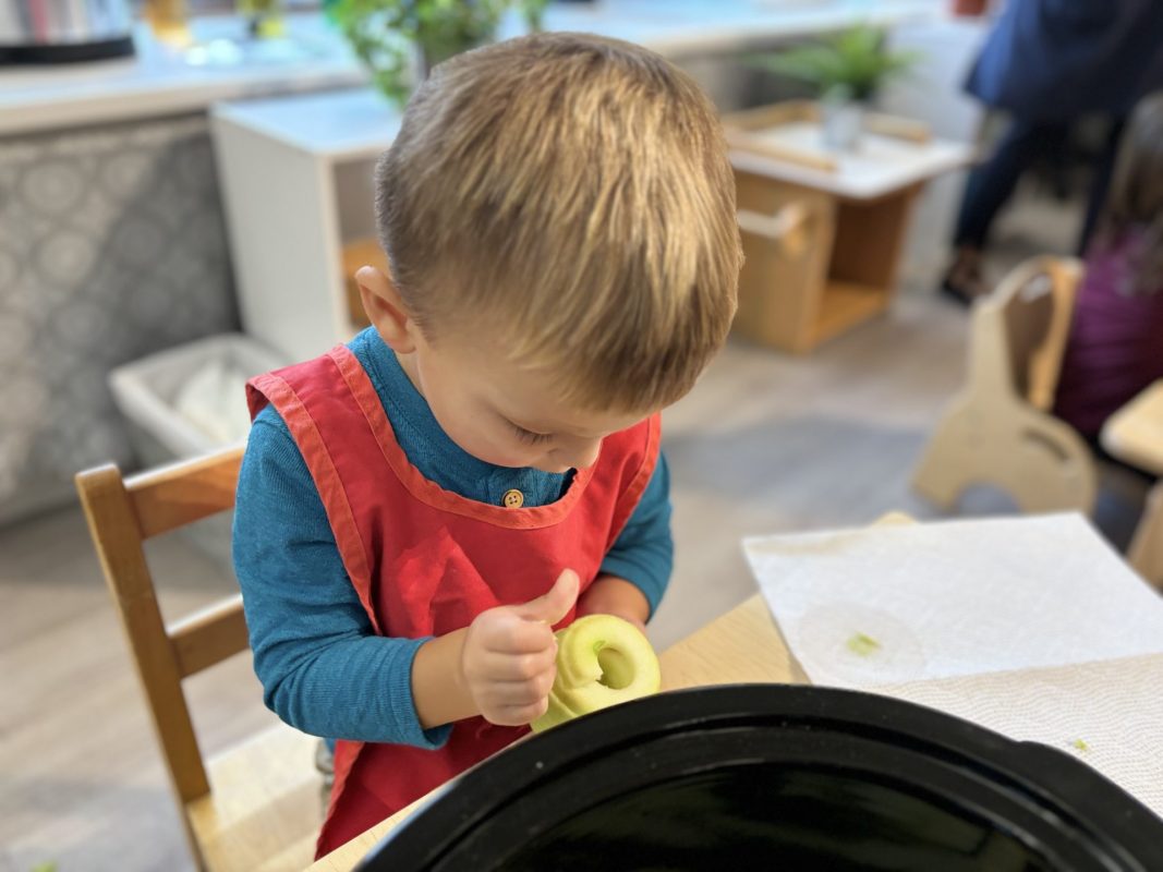 The children were smitten watching our older “friends” walk in the Halloween Parade! Each child waved with joy and watched in awe of our peers; the parade ended with an epic spooky dance by all the students! The toddlers definitely let loose, too! As the week wrapped up, we read all the Halloween books, baked the pumpkin bread, and explored the inside of pumpkins. as one of our young friends said, “Miss Mollie, Finally Halloween!” Yes, kiddo, it’s finally Halloween!!!