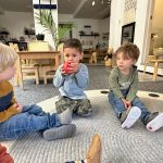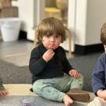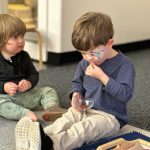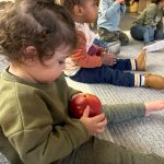 Special thanks to the Huttemann and Sabath families for generously providing all the ingredients so that we could bake banana-blueberry bread to contribute to the special gathering. The children absolutely loved the entire baking process – washing hands, mashing, measuring, mixing, stirring, sniffing, bringing the bread to and from the oven, and finally tasting the bread. (The children made muffins to share as a class, but we baked bread to share at the communal feast.)