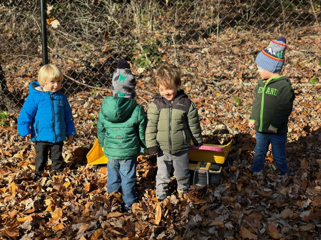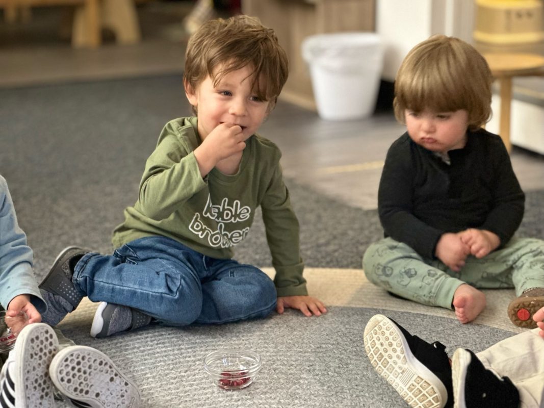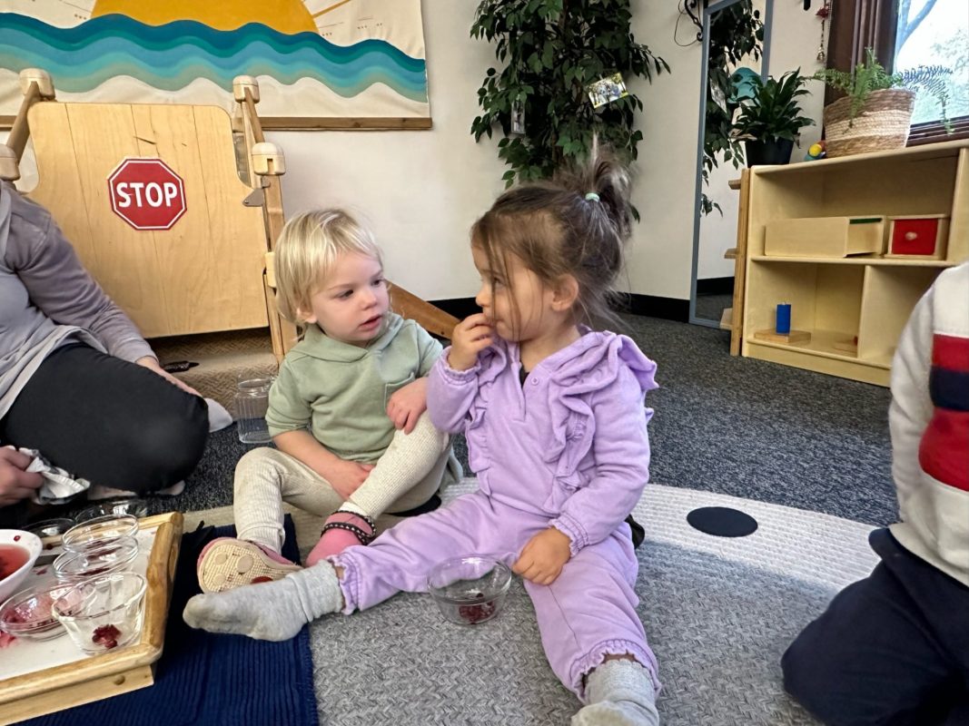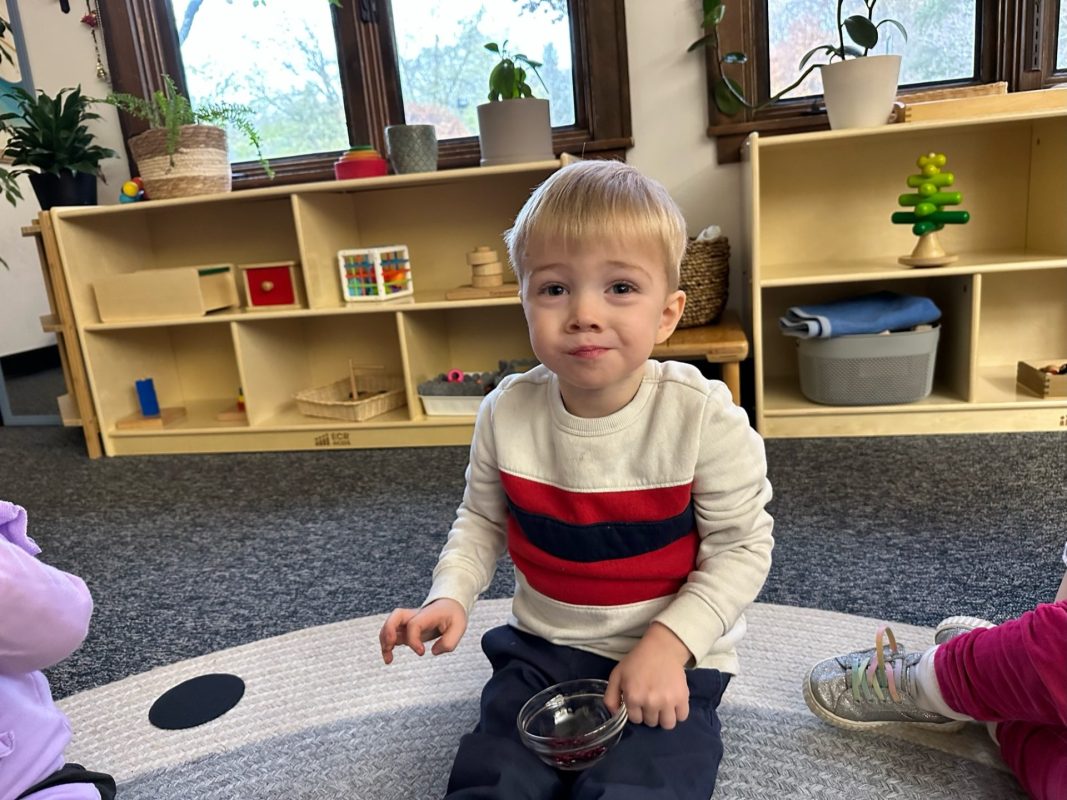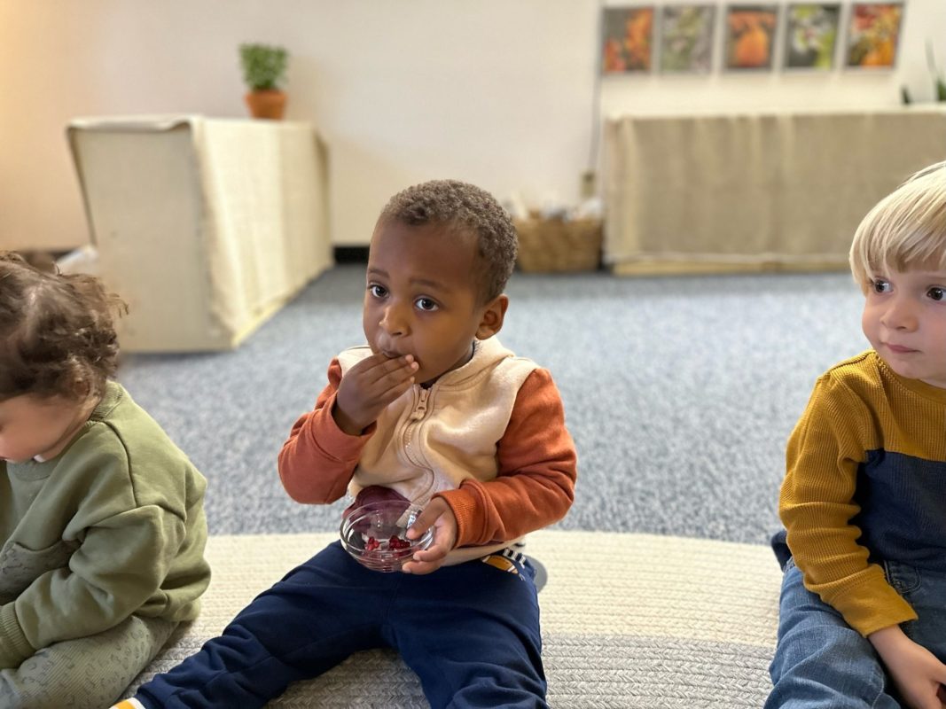 Special thanks to the Huttemann and Sabath families for generously providing all the ingredients so that we could bake banana-blueberry bread to contribute to the special gathering. The children absolutely loved the entire baking process – washing hands, mashing, measuring, mixing, stirring, sniffing, bringing the bread to and from the oven, and finally tasting the bread. (The children made muffins to share as a class, but we baked bread to share at the communal feast.)