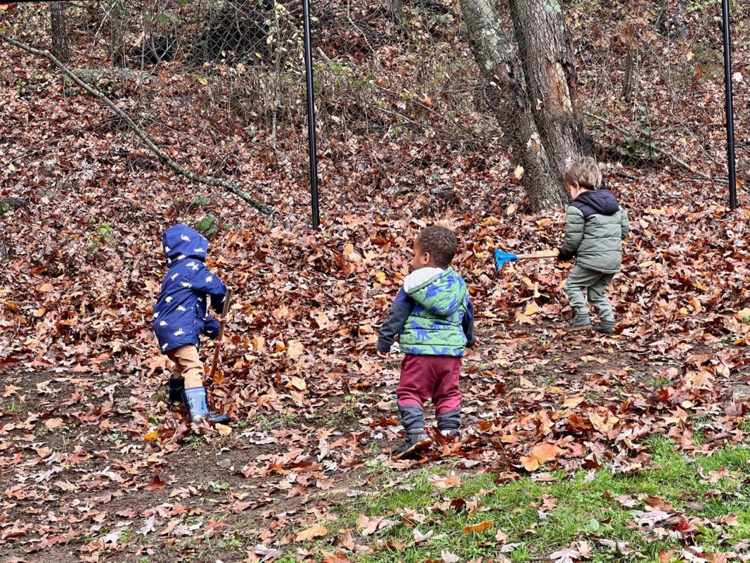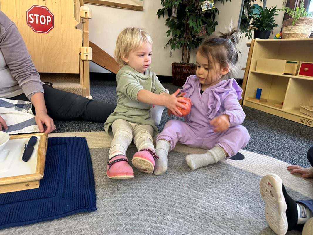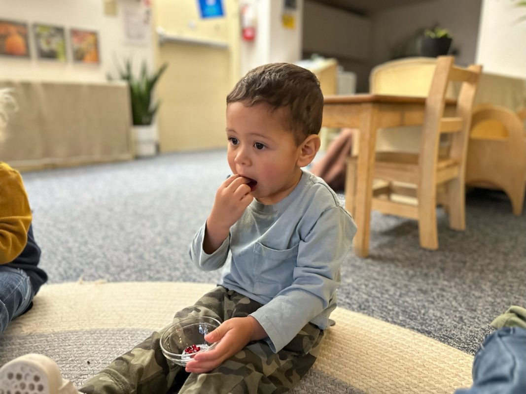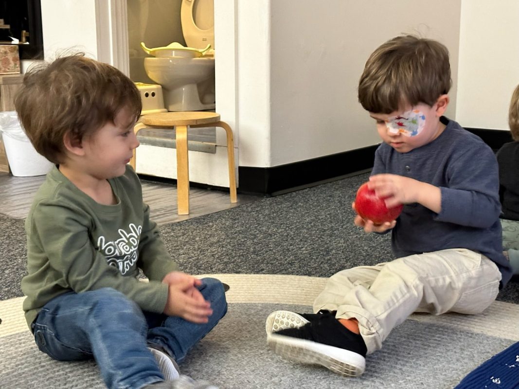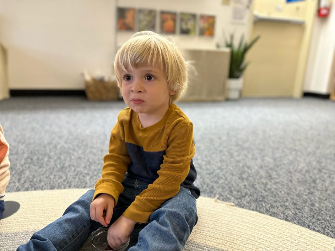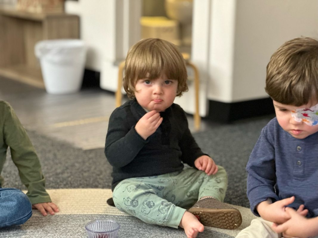 Special thanks to the Huttemann and Sabath families for generously providing all the ingredients so that we could bake banana-blueberry bread to contribute to the special gathering. The children absolutely loved the entire baking process – washing hands, mashing, measuring, mixing, stirring, sniffing, bringing the bread to and from the oven, and finally tasting the bread. (The children made muffins to share as a class, but we baked bread to share at the communal feast.)