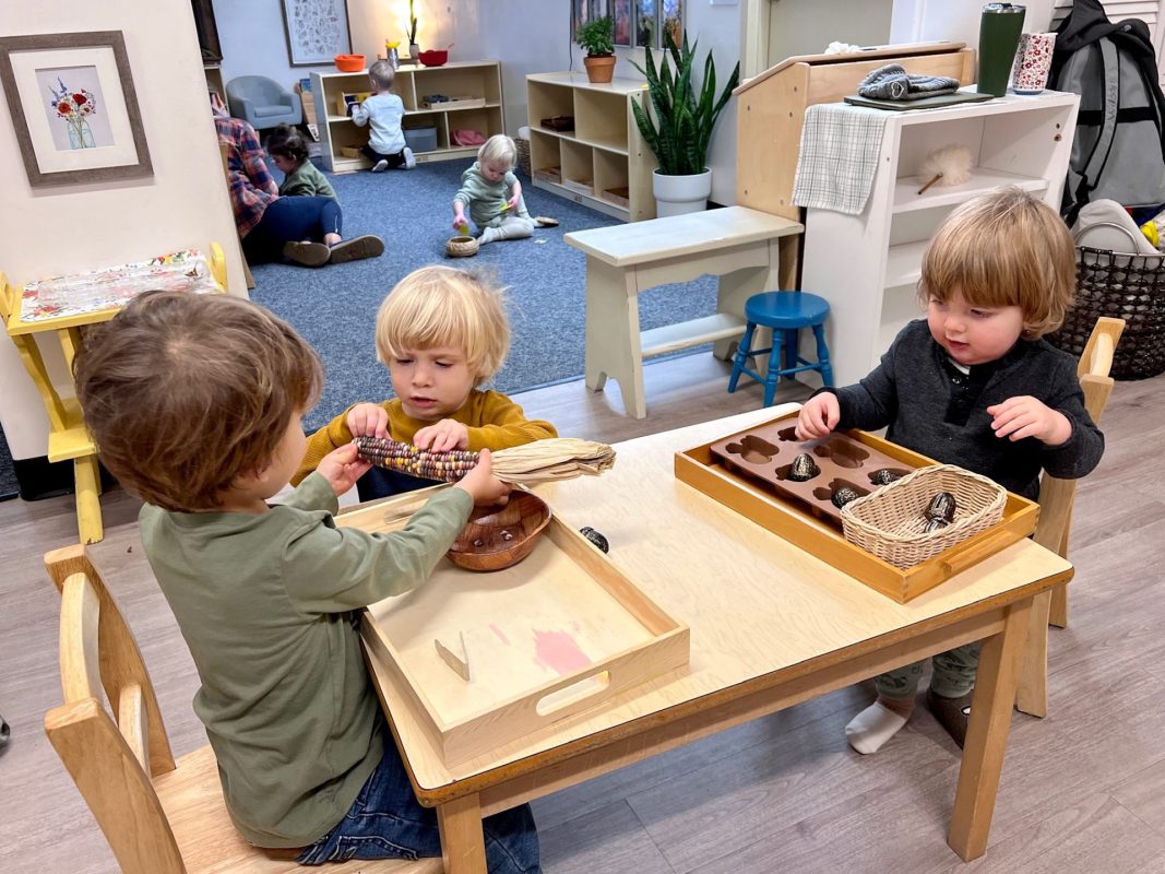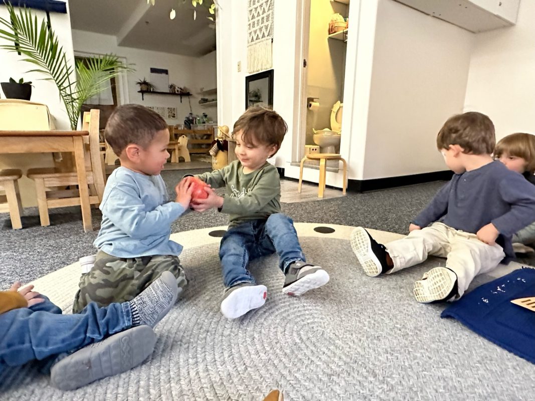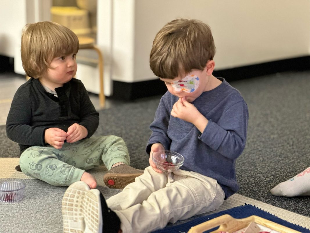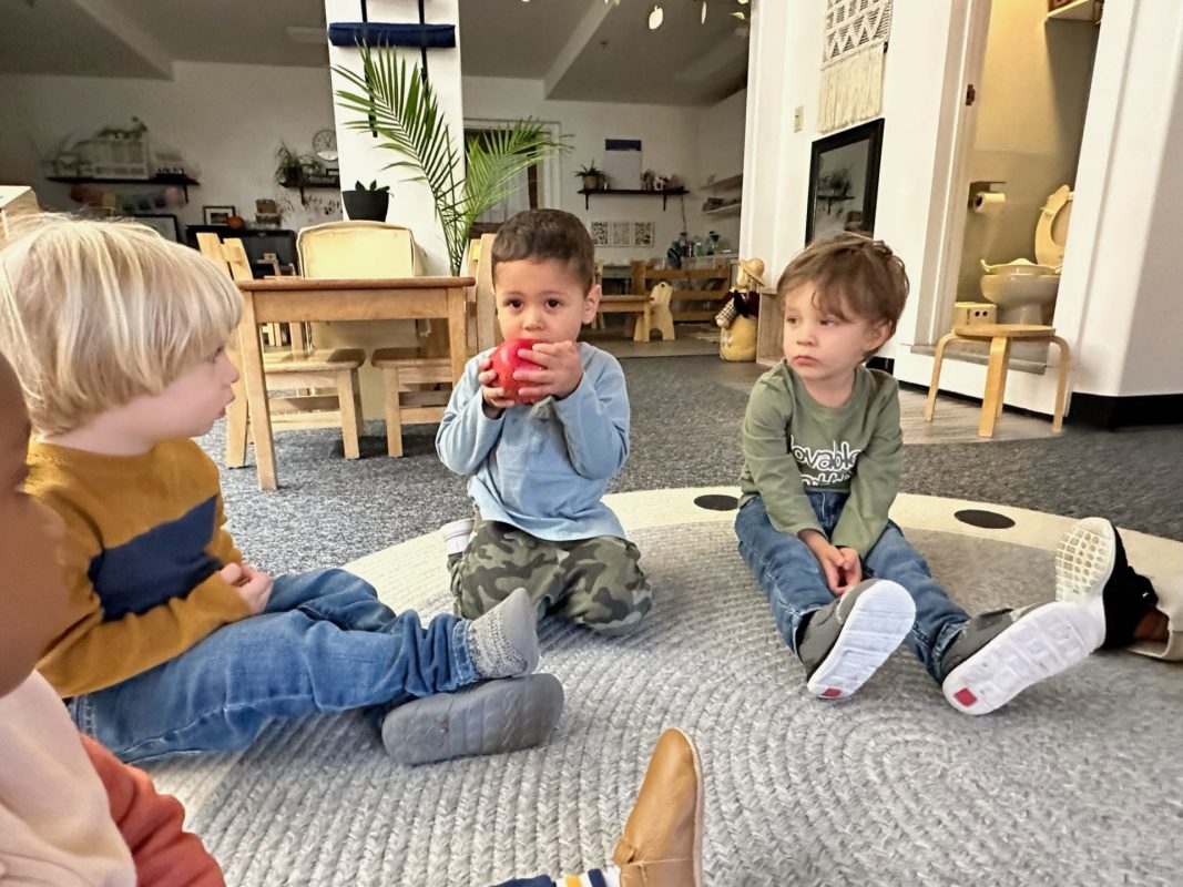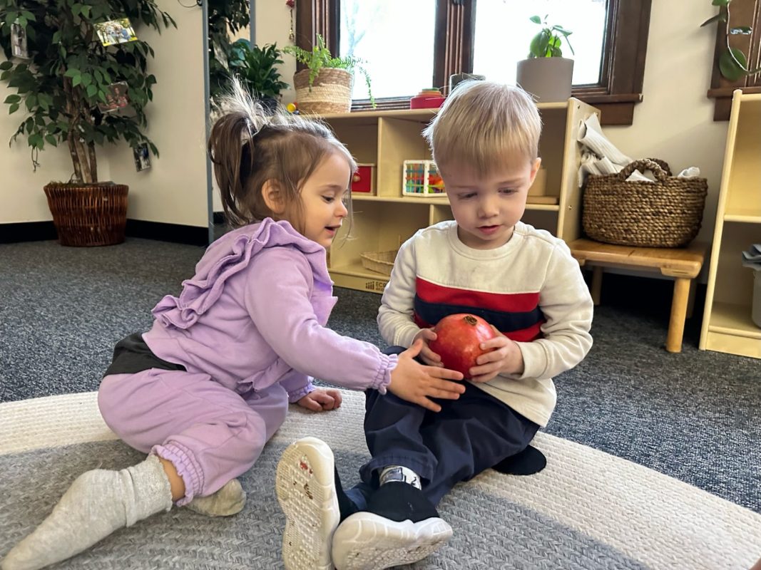 Special thanks to the Huttemann and Sabath families for generously providing all the ingredients so that we could bake banana-blueberry bread to contribute to the special gathering. The children absolutely loved the entire baking process – washing hands, mashing, measuring, mixing, stirring, sniffing, bringing the bread to and from the oven, and finally tasting the bread. (The children made muffins to share as a class, but we baked bread to share at the communal feast.)