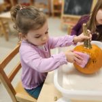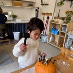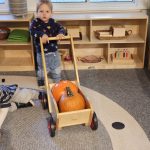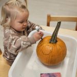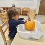 We kicked things off with a pumpkin-picking adventure right here at school. Toddlers were invited to walk through our mini pumpkin patch, choosing a pumpkin of their own. It was wonderful to see the independence and pride as each child carefully selected one — big, small, bumpy, smooth — all perfect in their eyes.
