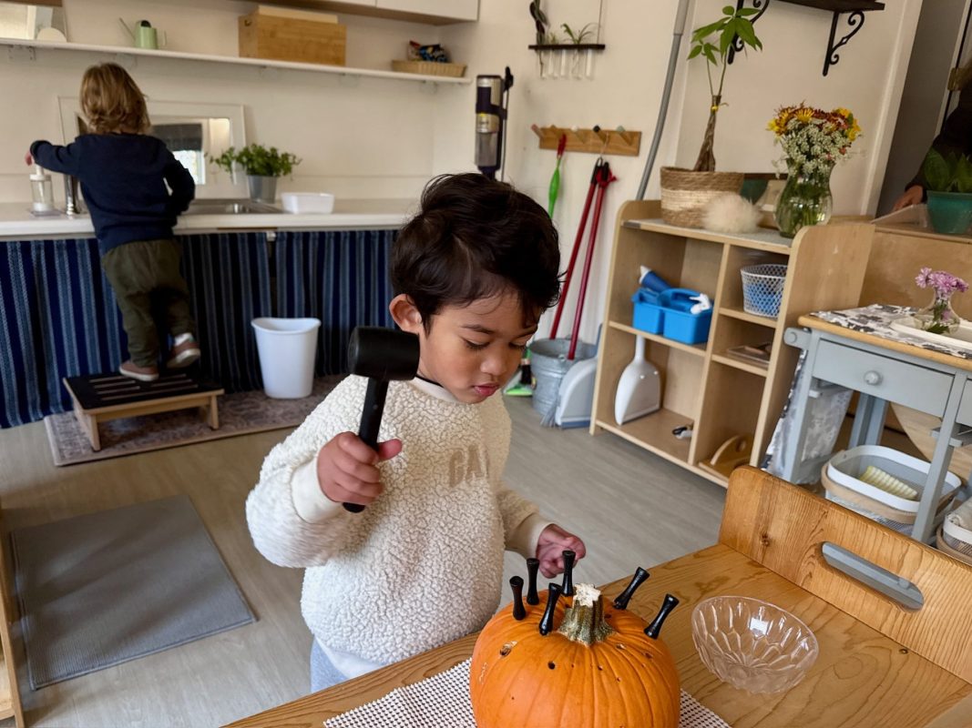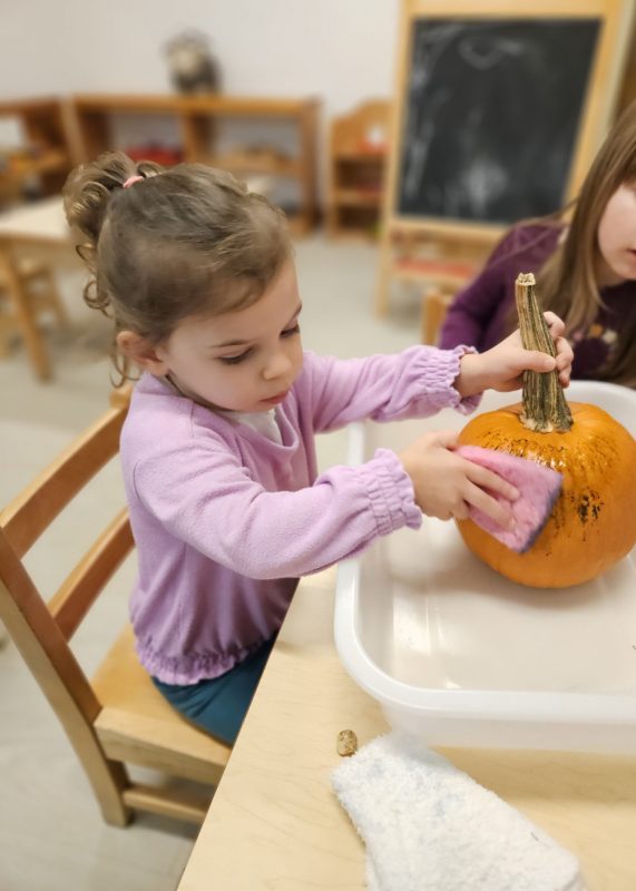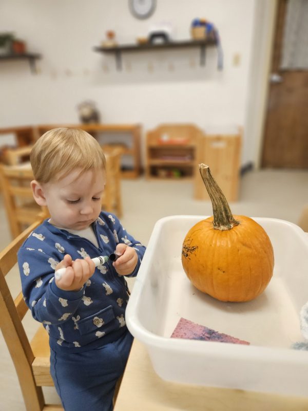 Back in the classroom, we moved from observing to creating! Each child had the opportunity to paint their pumpkin, exploring color, texture, and process at their own pace. True to Montessori principles, we focused on independence and creativity — little hands worked hard, and the results were both beautiful and joyfully unique.